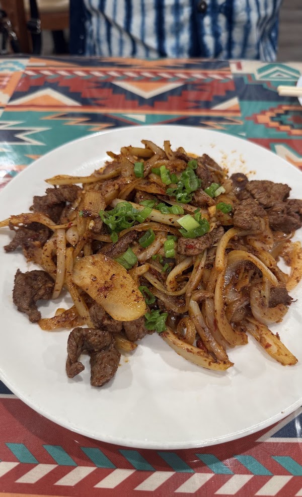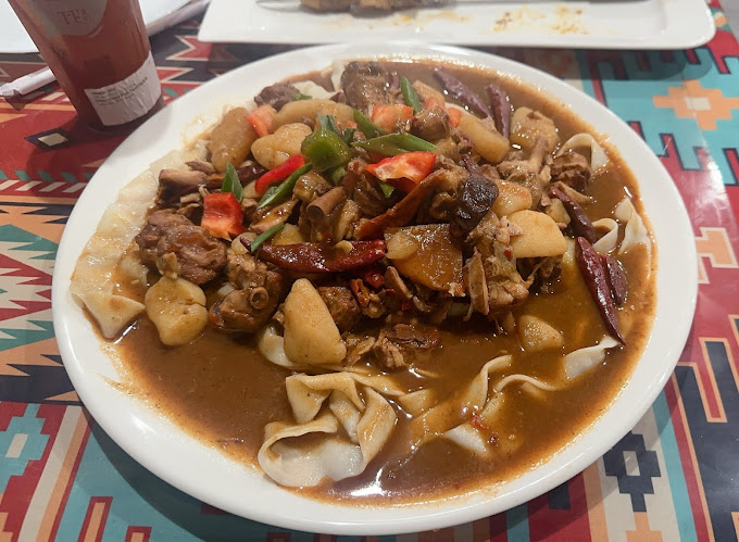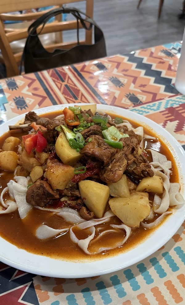 The environment is beautifully decorated, creating a cozy and inviting dining experience.The food portions are very generous. I particularly enjoyed the chewy texture of the noodles,and the lamb skewers were another highlight—tender, flavorful, and grilled just right. While the seasoning was rich, the spice level was quite mild, making it suitable for those who don’t prefer overly spicy food.Plus price is very reasonable.